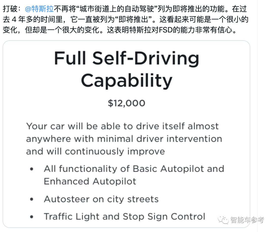 刚刚,一位简介为“特斯拉投资者”,坐拥五十万粉丝的推特博主称,在特斯拉美国官网下单新车时,选购FSD的页面发生了一个细小但重大的变化——