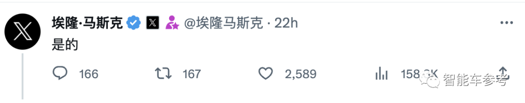 博主认为“这表示特斯拉对FSD的能力非常有信心”,得到了马斯克本人亲自回复。