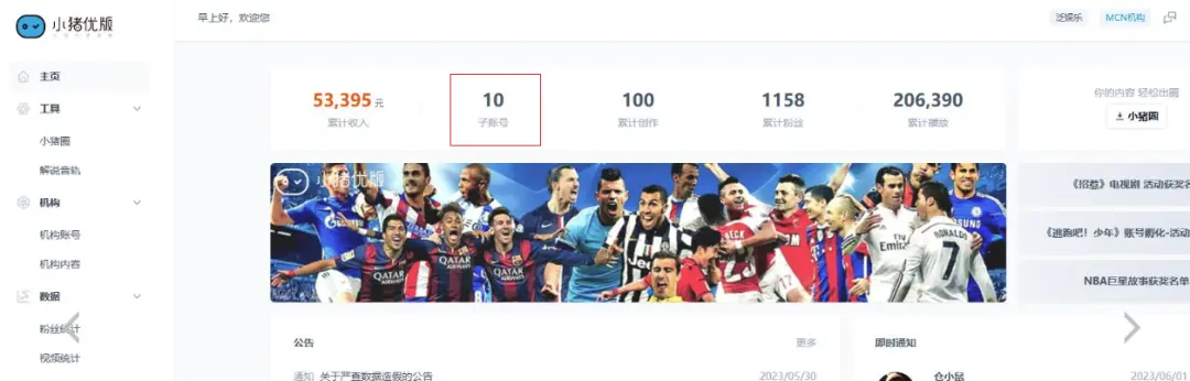 每组素材包( 或称版权包 )内含有 10 个子账号,你剪辑好以后,通过子账号上传即可,每天每个子账号只能发布 1 个视频。