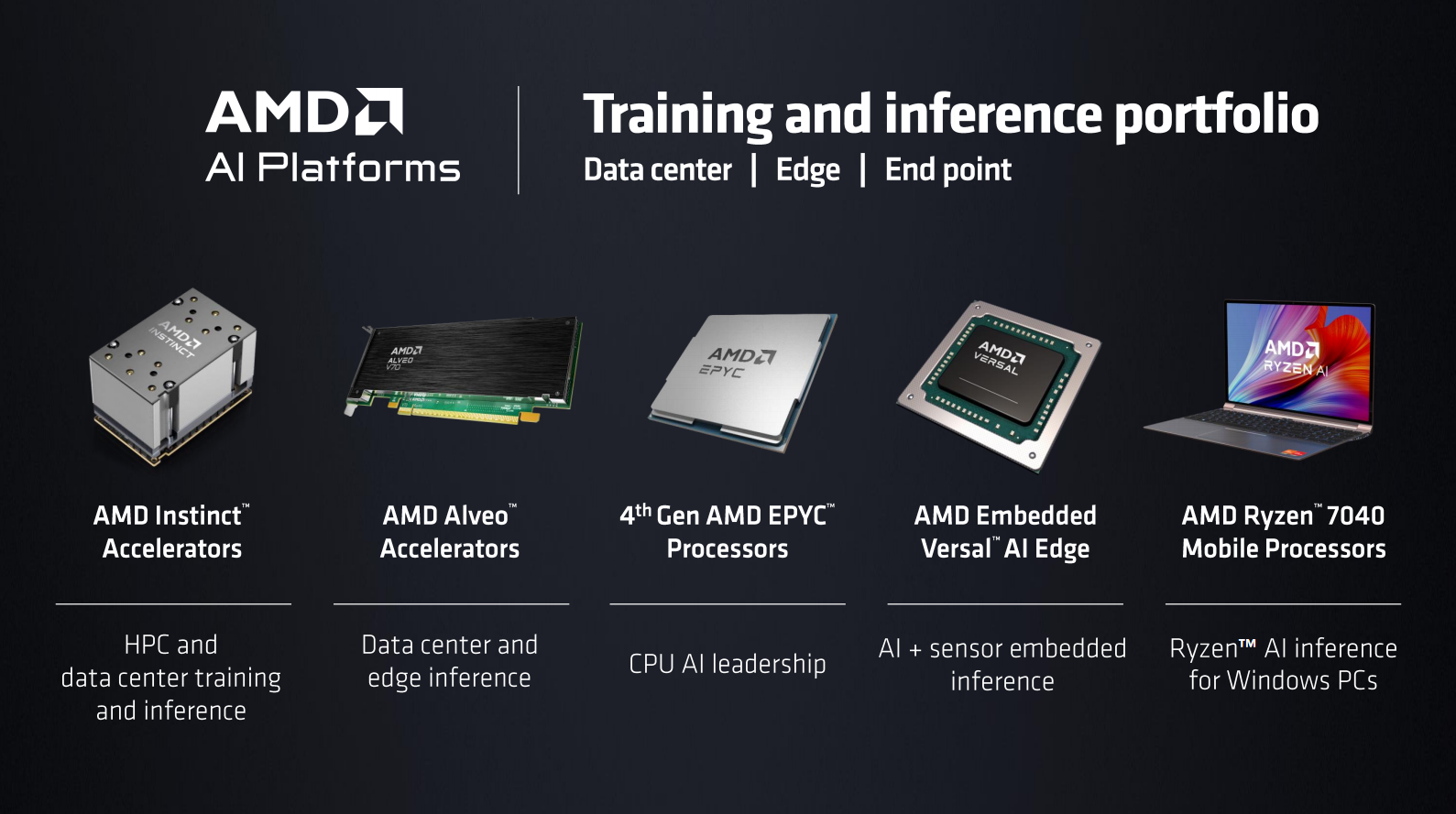 更进一步,不仅仅在数据中心,AMD在消费端的AI也崭露头角,锐龙7040系列就是全球首款集成独立AI引擎的处理器,开启了AI笔记本的时代。