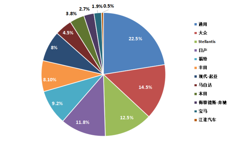图5:2022年墨西哥主要车企的市场份额,资料来源:Marklines