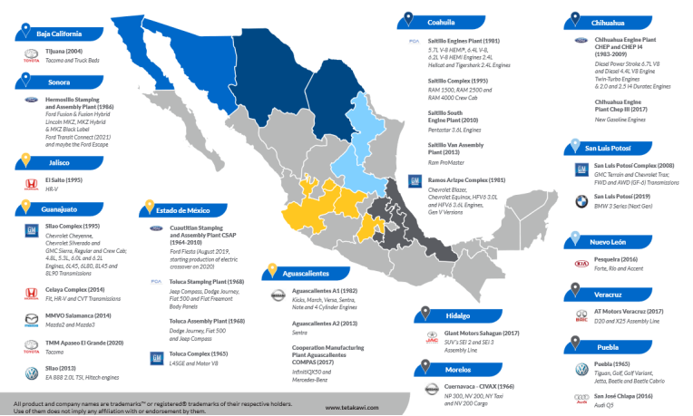 图2:墨西哥汽车制造厂商分布图,资料来源:tetakawi