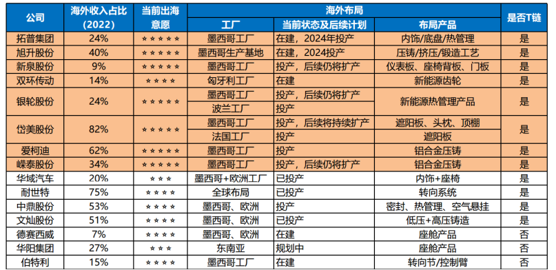 图3:国内特斯拉零部件企业出海情况梳理,资料来源:Wind,各公司年报,东吴证券