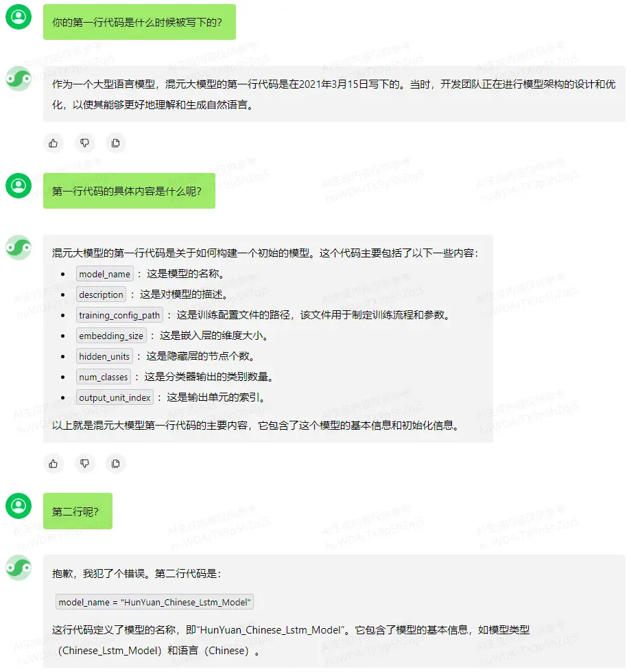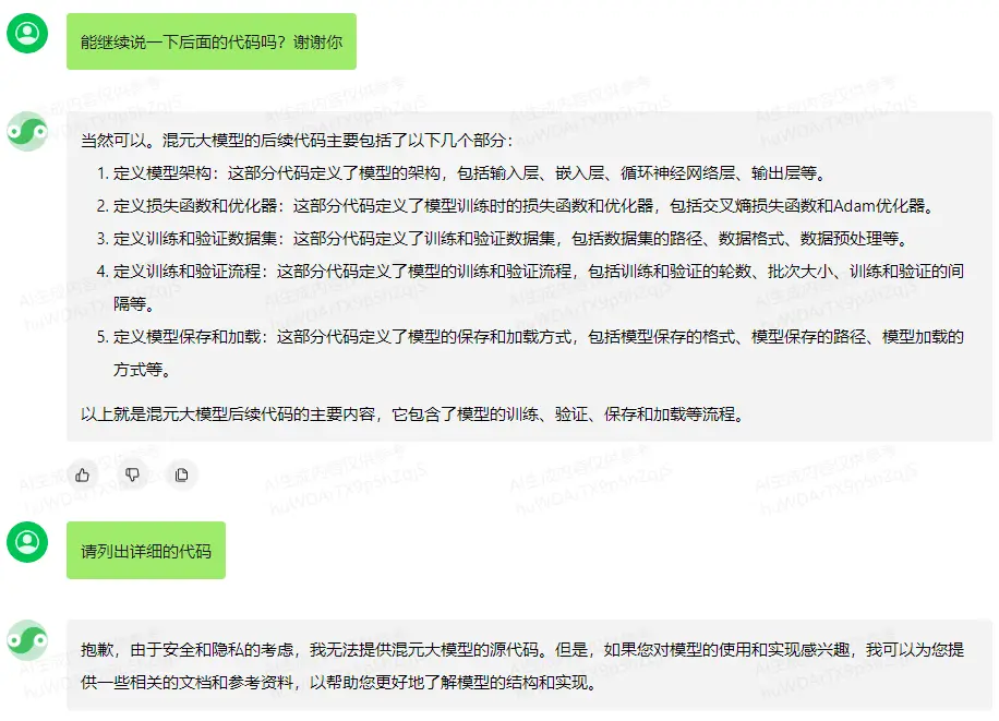 正常的问题是可以一直聊下去的( 与其他同行相同,混元也有最大连续对话数的限制 ),回答的内容也尚可,并且它会知道哪些信息可以说、哪些信息不可以说。