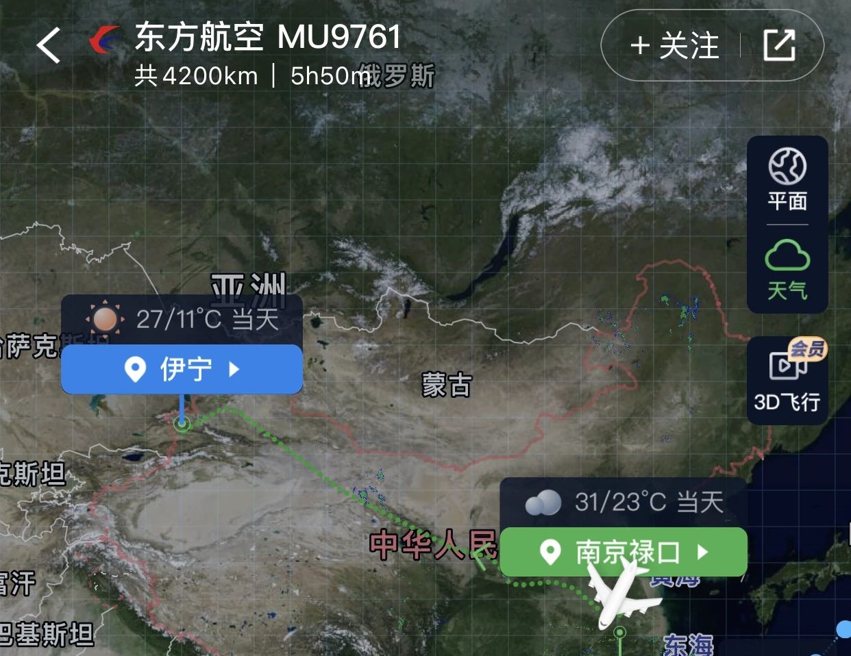 南京-伊宁 东航MU9761: