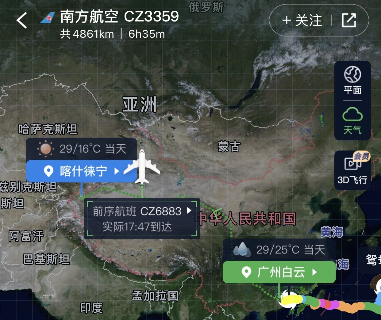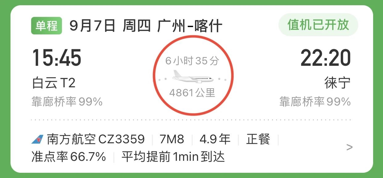 近日,南航开通了广州-喀什航线CZ3359。这是目前国内飞行时间最长的直飞航线,全程4861公里,需要6小时35分钟。是不是看到这两个数字就觉得累了?