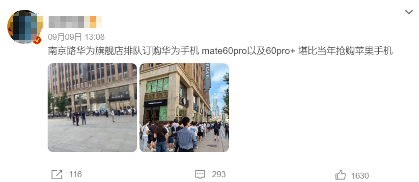近日,华为Mate 60系列未发先售引发抢购热潮,热度极高。而再过几天,也就是北京时间9月13日凌晨1点,苹果将举办新品发布会正式发布iPhone 15系列。届时,两大旗舰将针尖对麦芒。日前,有博主分享了上海南京路华为旗舰店消费者排队订购华为Mate60 Pro以及Mate 60 Pro+手机的盛况,场面堪比当年抢购苹果手机 。