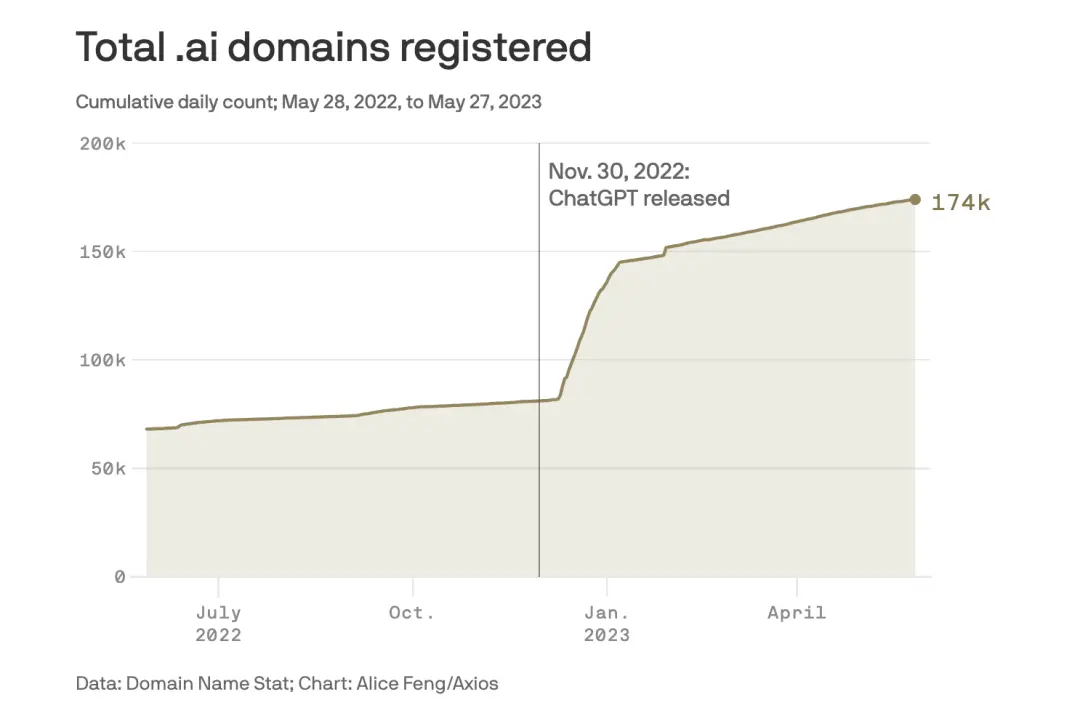 ChatGPT 发布后,.ai 注册域名开始成倍增长|图片来源:axios