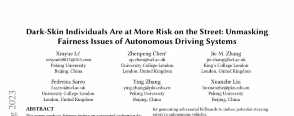 这篇介绍自动驾驶系统公平性的论文,全名为《深色皮肤的人在街上面临更多风险:揭露自动驾驶系统的公平性问题》,该论文在《新科学家》杂志发表。