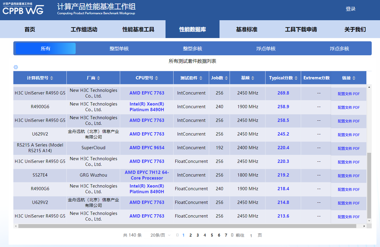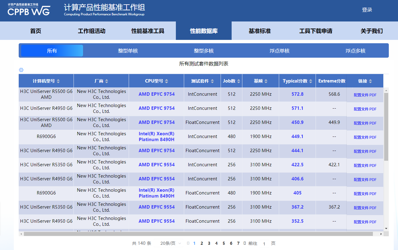 根据测试结果,搭载AMD EPYC 9754处理器的新华三UniServer R5500 G6拿到了最好成绩,Typical典型分数达到572.8,同款处理器的UniServer R4950 G6也得到了571.1分,遥遥领先。