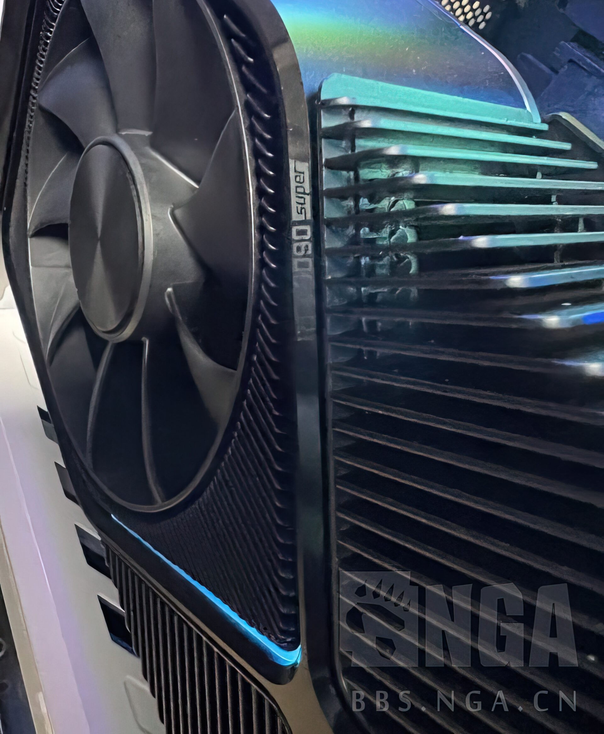 还有玩家放出了一张局部图,可以看到在散热支架的边缘处,同样清晰地写着“RTX 3090 Super”。