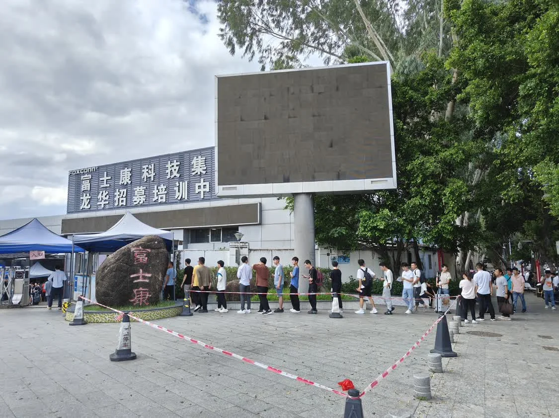 9月12日,第一财经记者在深圳龙华富士康厂区和龙华汽车站见到多名人力中介招揽求职者。多名中介人员对记者表示,苹果手机相关部门持续招聘后人数基本已满。虽然富士康龙华招聘公众号显示主要做苹果手机的iDPBG部门还在招小时工,时薪21元,但部分中介近两日已未接到招工需求。