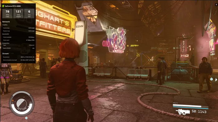 根据 The Verge 目前的体验报告,在 GeForce Now 上使用了 RTX 4080 等效显卡,因此如果你的显卡相比性能更弱的话必然会获得更好的整体画质。但是在部分区域例如新亚特兰蒂斯城,不论如何调整画面设置和分辨率,帧数依然会下降至47 至 48fps 左右。但在霓虹城里却有着 4K分辨率超高画质下帧数保持在 60fps以上的状况,这显然是因为游戏的帧数也受到了CPU 的限制。在星球的空旷区域里,高画质高分辨率帧数能够保持在 90fps 以上。