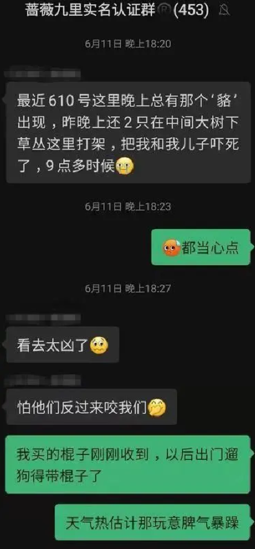 有人说貉会攻击人,已经有业主被咬伤了,有人说貉成群结队地在小区里晃荡,赶走了小区里的野猫,还和野猫抢猫粮吃,食物不够,有时候还会攻击猫,有居民听到了猫的惨叫声……