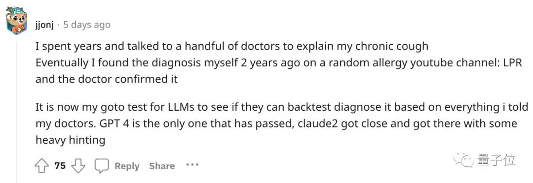 有网友就以自己为病例,测试了各种大语言模型是否具备诊断能力,最终认为还是GPT-4比较能胜任: