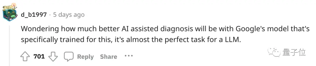 还有网友cue了下Google专门训练的辅助医疗诊断大模型Med-PaLM,想知道它的诊断结果如何:
