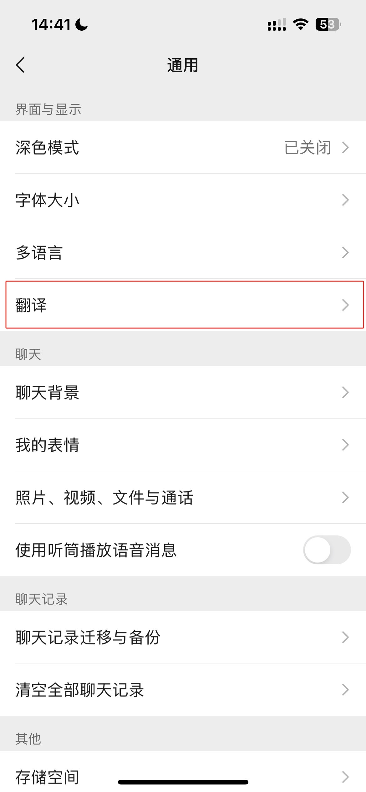 具体来看,在新版微信中点击“我”-“设置”-“通用”界面,就能看到新增的“翻译”功能。