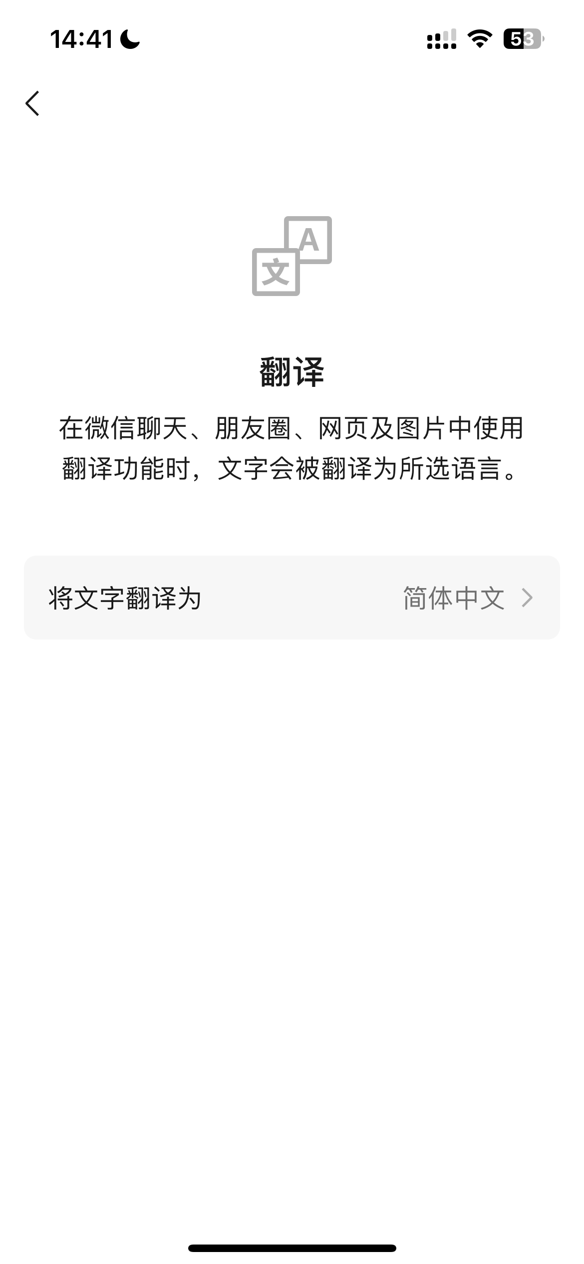 用户可将文字翻译为选择的语言,包括简体中文、繁体中文、英语、韩语等,在微信聊天、朋友圈、网页及图片中使用翻译功能时,文字就会被翻译为所选语言。