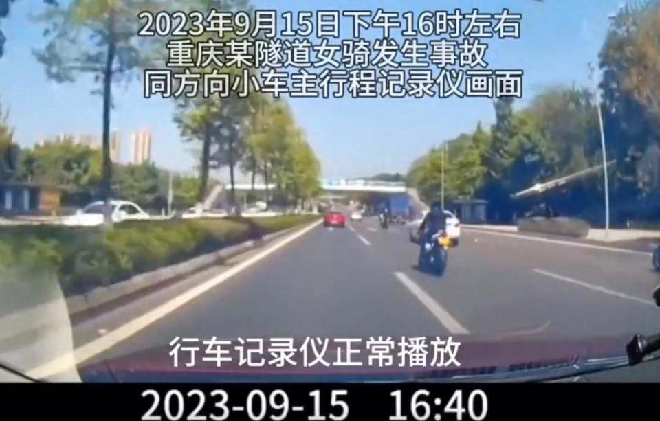 另一位目击者行车记录仪正好拍摄到头哥行驶画面和车祸画面,还原了整个车祸过程,显示车祸发生的时间是15日下午4点40左右。