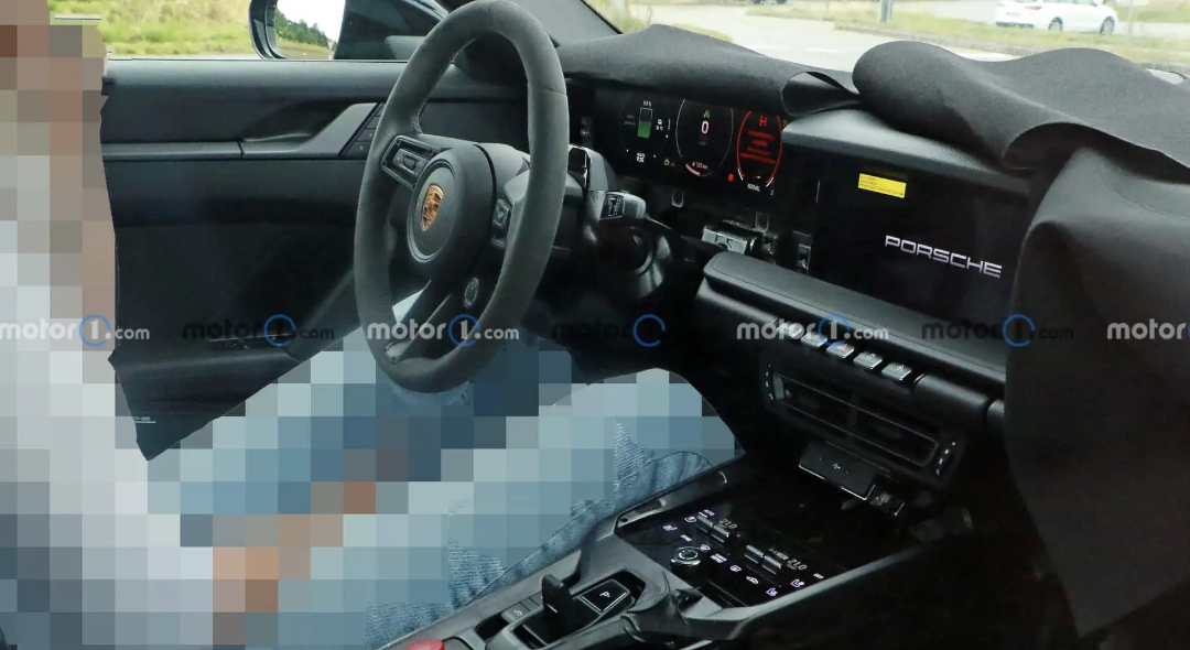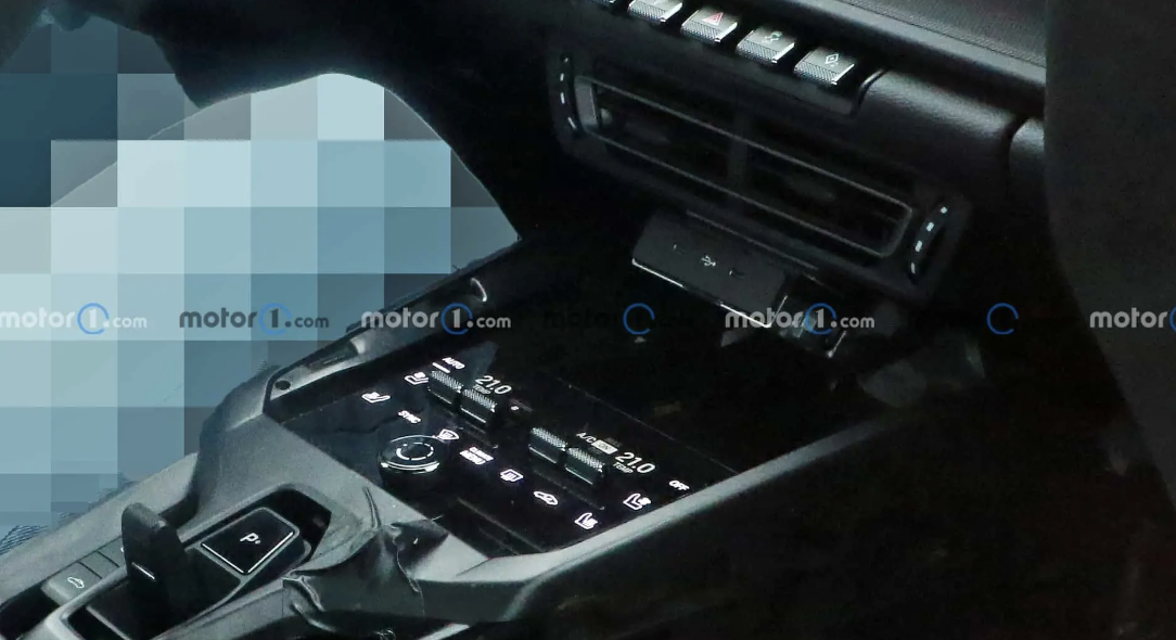 此外,扶手箱前端区也与老款截然不同,采用了拨杆式换档,更接近于911车型,而副驾被遮挡的部位,很有可能会搭载第三块屏幕。