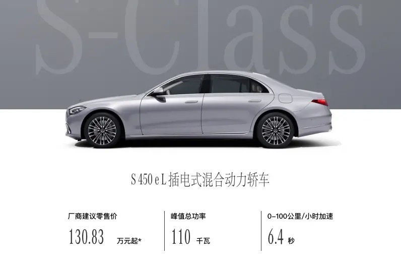 全新奔驰S 450 e L插电混合动力版车型已上市,售价为 130.83 万元。新车主要对配置进行了调整。外观来看,新车基本采用了普通S级的外观设计,只是在翼子板位置增加“EQ POWER”铭牌,以表明其插混身份。