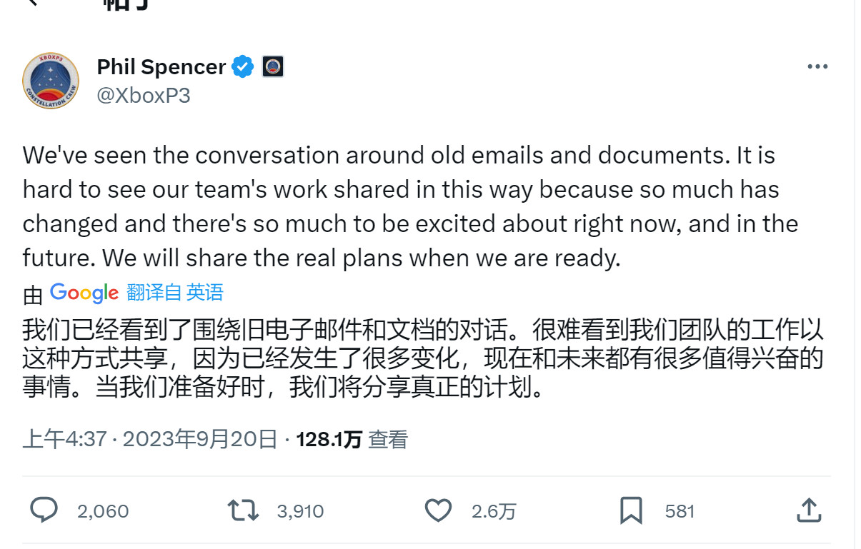 今日Xbox总裁Phil Spencer进行了回应。他发推表示:“我们已经看到了围绕旧电子邮件和文件的讨论,看到我们团队的工作竟以这种方式被分享出来,心里很难受,因为发生了太多的变化,现在和未来有太多值得兴奋的事情。当我们准备好时,我们会分享真正的计划”。