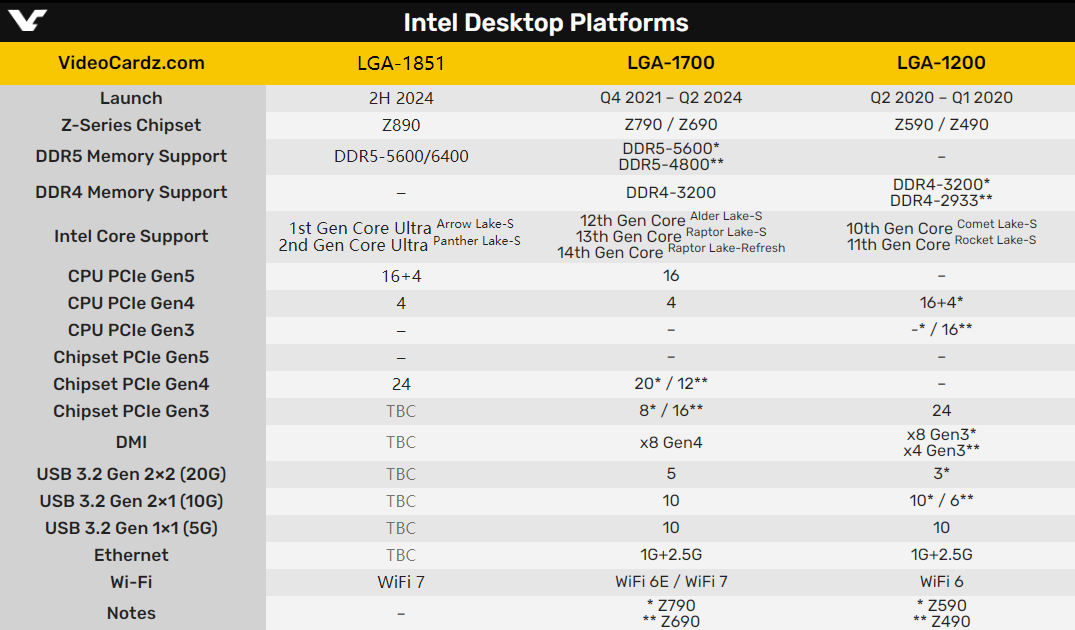 LGA1851平台预计会抛弃对DDR4内存的支持,PCIe 5.0总线通道从16条增加到20条,可以满足一块显卡、一块或多块SSD的需求。