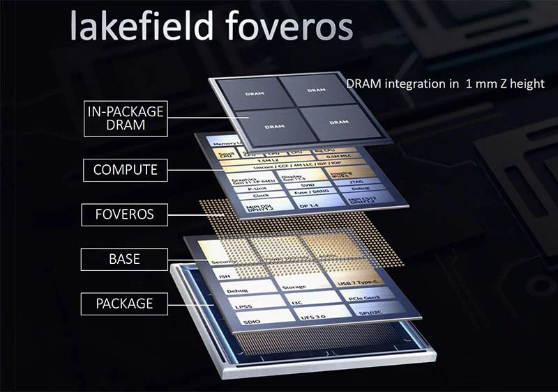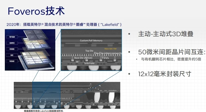 Meteor Lake处理器诞生的背后,离不开英特尔的新一代3D封装技术——Foveros,虽然早在2020年就已经在移动处理器上实验过,但是当时的技术尚未完全成熟,所以Lakefield也成为过去三年里英特尔唯一的3D封装PC处理器。