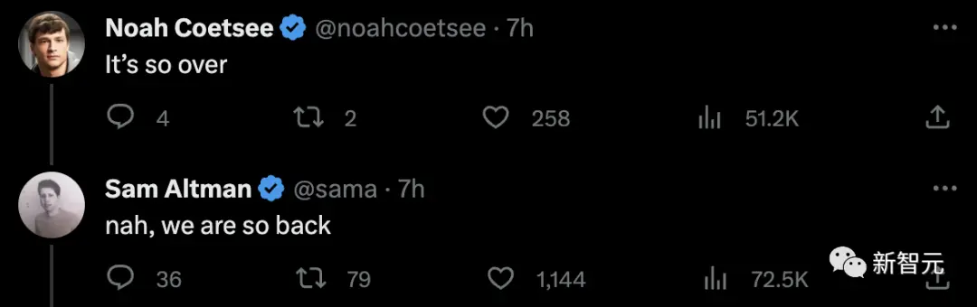 OpenAI CEO Sam Altman也在评论区得意地表示:“We are so back”。