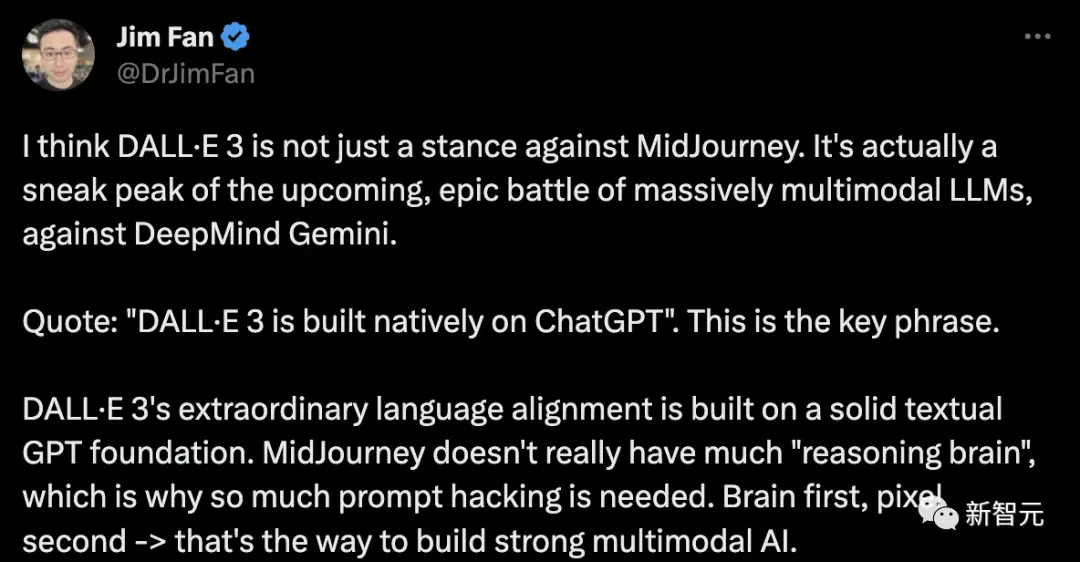 英伟达高级AI科学家Jim Fan兴奋表示,这就是大规模多模态LLM与GoogleGemini史诗之战的提前预演!