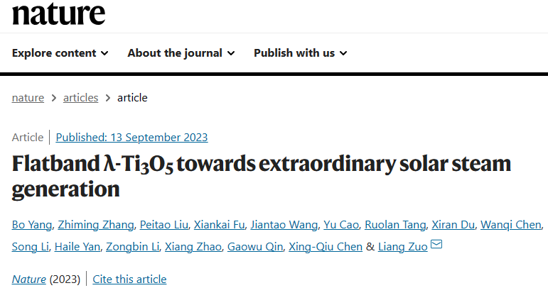 [1] Yang, B., Zhang, Z., Liu, P. et al. Flatband λ-Ti3O5 towards extraordinary solar steam generation. Nature (2023).
