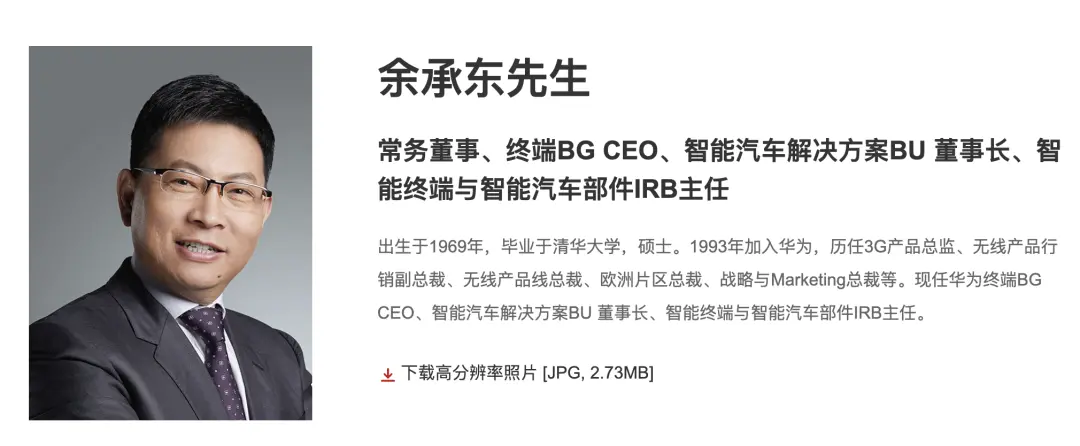 余承东在华为智能汽车解决方案BU(以下简称“车BU”)的职位,有了新变动。9月22日上午,华为官网正式更新管理层信息,余承东的车BU CEO职位,已经替换成了车BU 董事长。