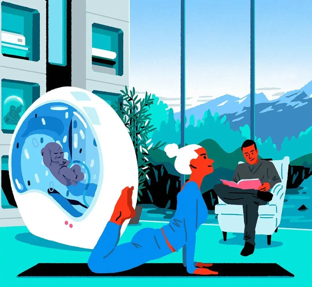 ▲很多人想象中的“人造子宫”:夫妻用机器在家养育孩子图片来源:Usbek & Rica