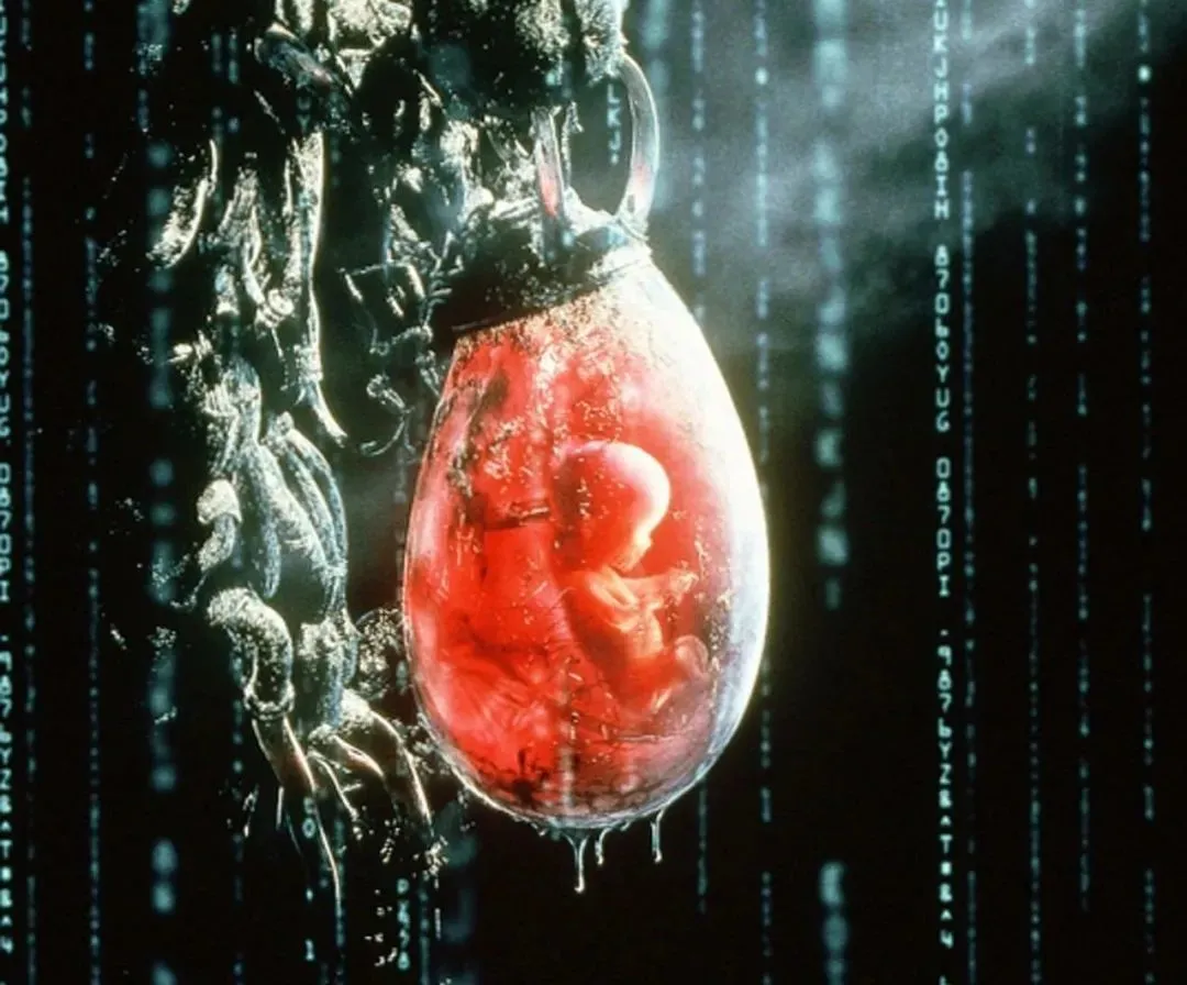 ▲《黑客帝国》中,Neo从Matrix母体中醒来的场景,充斥着科技毁灭人类的荒诞