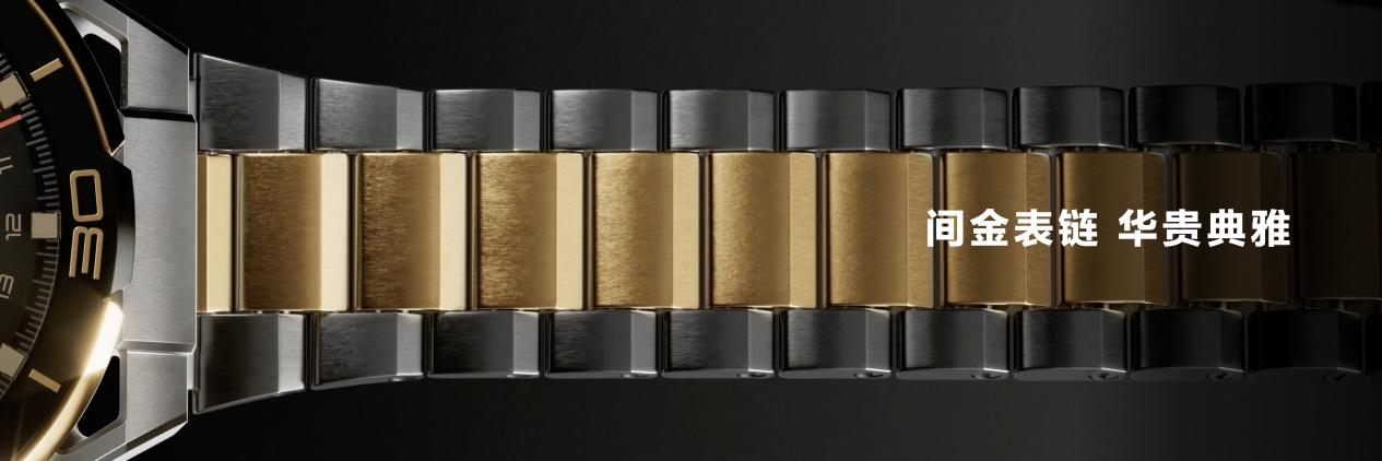 配备三格链节间金钦表带,金色与黑色相辅相成,与表盘交相呼应。