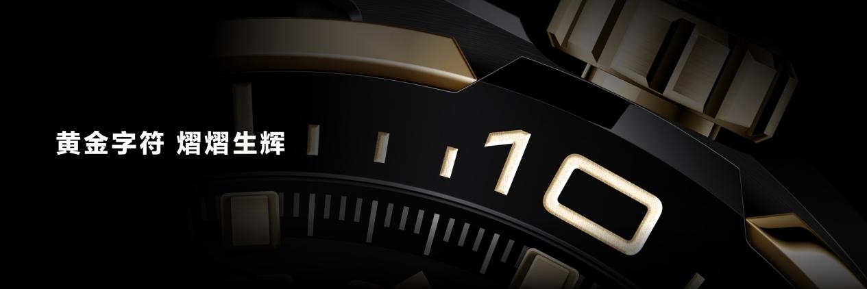 制表大师运用高级腕表镶金工艺,在陶瓷表圈边缘处纯手工镶嵌六段18K黄金。
