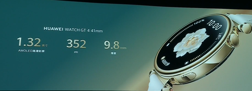 41mm采用标准圆形造型,直径更小(上一代是42mm),屏占比提升13%,屏幕黑边的视觉观感进一步缩小。厚度也削薄至9.8mm,佩戴更加舒适无感。表耳、表冠处采用中点悬浮设计,如同三颗金色星星悬于空中,雅致浑然天成。