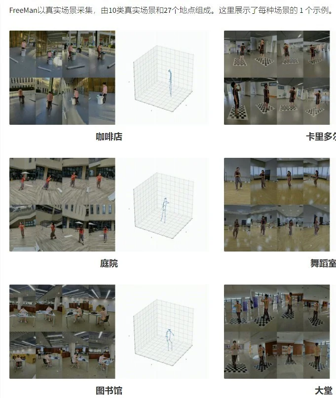 中国的一支研究团队推出了“FreeMan”,这个由来自香港中文大学(深圳)和腾讯等机构的团队共同合作开发的项目,被誉为革新性的多视角数据集,旨在为3D人体姿势估计领域带来新的突破。