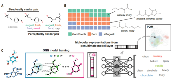 2023 年 8 月,在《科学》杂志上发表了一款 AI 气味分析的图神经网络(GNN)模型。
