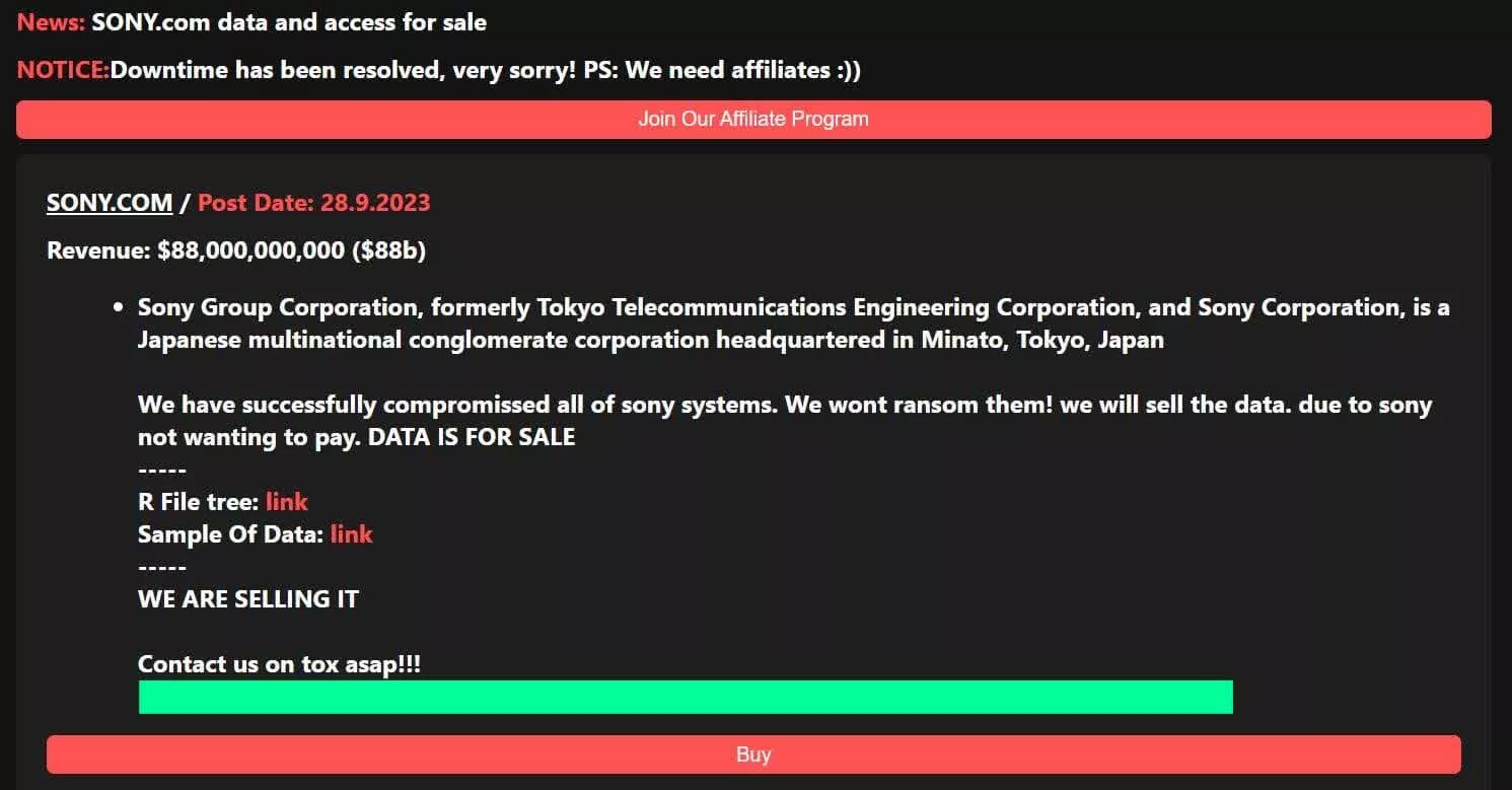 索尼公司表示,在一个勒索软件组织声称入侵了该公司的系统后,公司已对此展开调查。据 Cyber Security Connect 报道,一个自称为 Ransomed.vc 的勒索软件组织声称已入侵索尼集团,并威胁要出售窃取的数据。