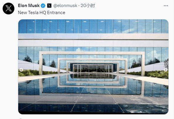 9月27日消息,当地时间周二,美国电动汽车制造商埃隆·马斯克在社交媒体X上分享了一张得州超级工厂正门完工后的照片,显示工厂入口通道采用了大量的反光元素。照片显示,通往工厂正门的走道地面很光亮,甚至可以看到倒影的大型矩形白色拱门,建筑物正面是巨大的玻璃幕墙。