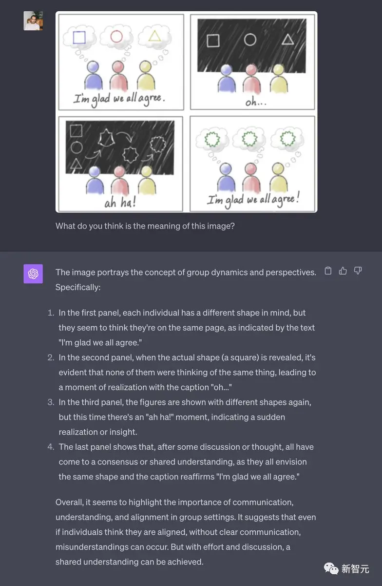 它竟然可以准确的识别出这4张图想表达的“沟通的重要性”的隐喻,这也太离谱了。