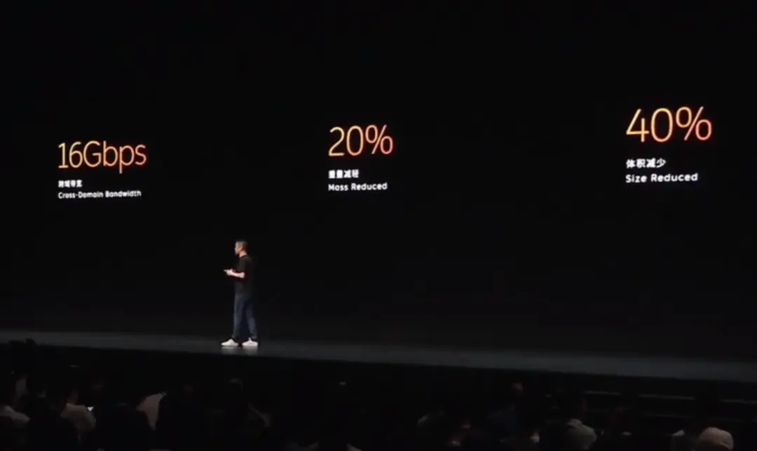 数据说话,蔚来做的跨域融合,带宽可以达到 16Gbps ,什么概念呢?现在车上常用的千兆以太网,带宽上限是 1000Mbps ,这波直接提升了十几倍。