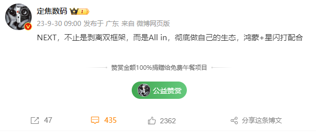 在今年8月的开发者大会上,华为公布了HarmonyOS NEXT开发者预览版,将于2024年第一季度面向所有开发者开放。日前,数码博主“定焦数码”透露,NEXT不止是剥离双框架,而是All in,要彻底做自己的生态,鸿蒙与星闪打配合。该博主所说的正是HarmonyOS NEXT。