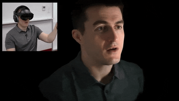 想象未来进入会议室,有些人实际在现场,有些人则以这种逼真的虚拟形态出现,并通过结合混合现实技术叠加在物理环境上:你以为TA坐在桌子边跟你聊项目,其实TA远在千里之外;夜深人静一个人在外地想家的时候,带上头显亲人就近在咫尺。而对面人的一颦一笑,每一个细微的面部表情,都可以几乎没有延时和耗损地立体真实再现。