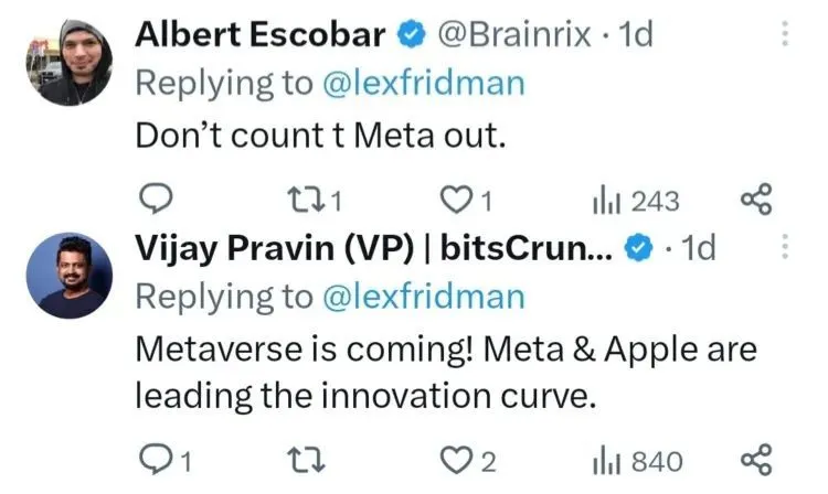 与以往不同的是,这次两人没有在物理世界碰面,而是相隔着大半个美国,在元宇宙里以超逼真的3D虚拟形象完成了对话。截至硅星人发稿时,这场名为“First Interview in Metaverse”的采访已在 X(原Twitter)上狂揽近1千3百万观看量。