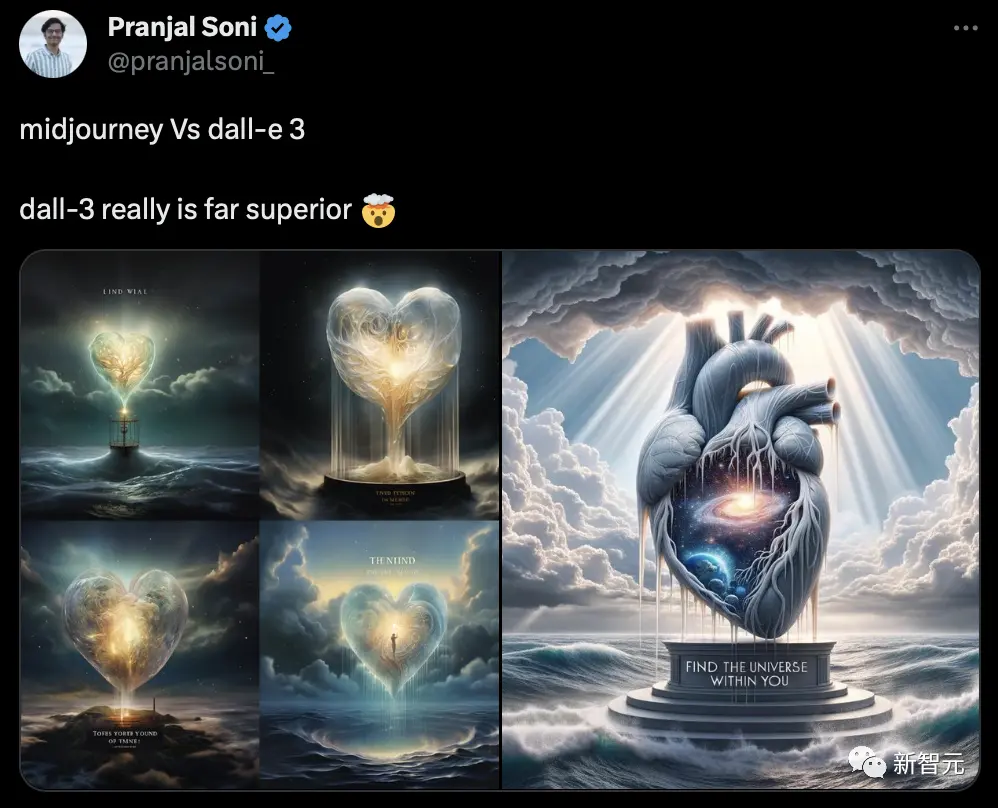 凑热闹的网友们也晒出了同一个Prompt用DALL·E 3和Midjourney作画的对比图。