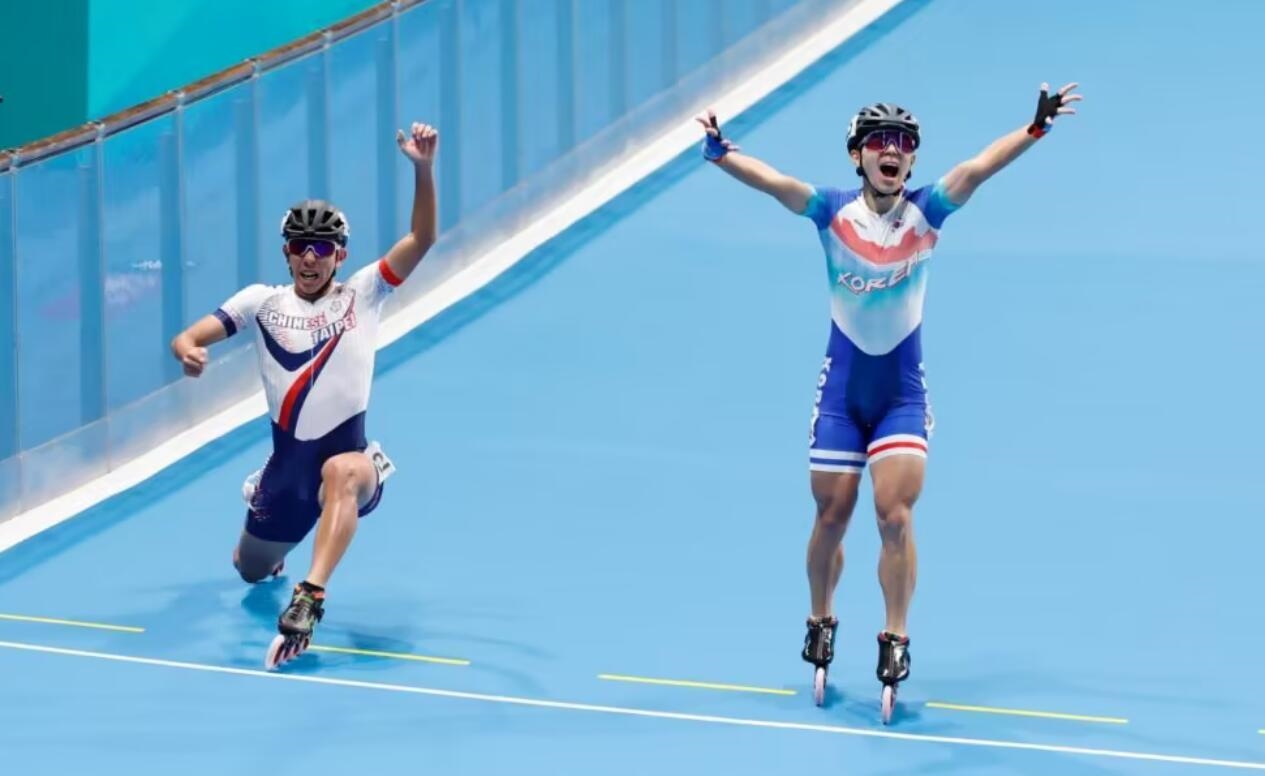 10月21日的杭州亚运会轮滑赛场上演了戏剧性一幕,韩国队以为胜利在握而提前庆祝,结果被中国台北队以0.01秒极限反超,丢掉了男子速度轮滑3000米接力金牌。据悉,在男子速度轮滑3000米接力赛共进行15圈。发令枪响后,韩国队处于领先位置。比赛进入最后5圈,中国台北队逐渐赶上,与韩国队展开激烈争夺。