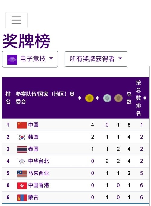 10月3日消息,杭州亚运会电子竞技项目全部比赛已经结束,中国队以4金1铜的成绩位列电竞项目奖牌榜第一!中国队在《王者荣耀》亚运版本、《梦三国2》、《和平精英》亚运版本、《Dota2》等4项比赛中收获金牌,在《英雄联盟》项目中收获铜牌。