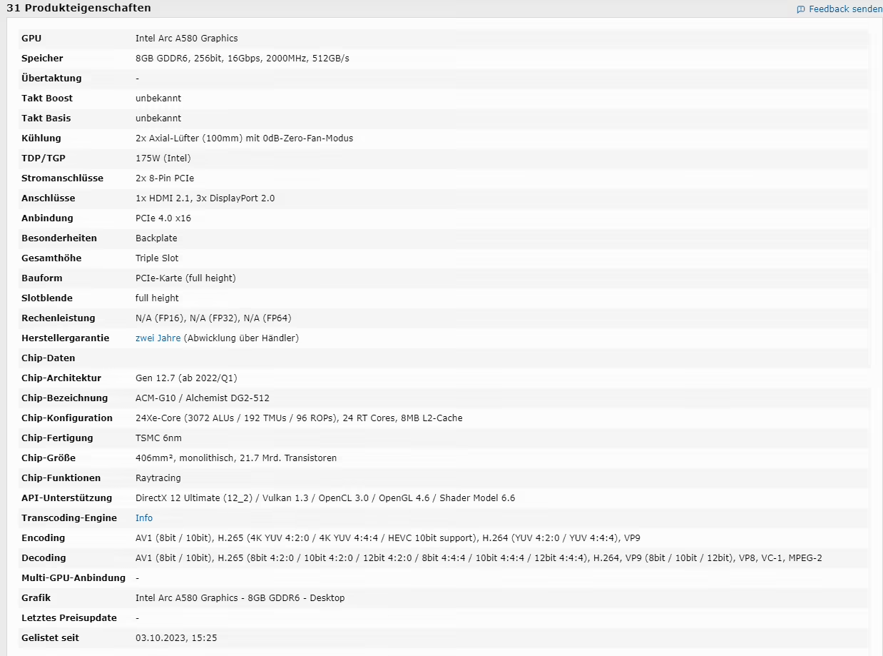 但是最近华擎在奥地利电商平台上上架了华擎锐炫A580挑战者Challenger OC显卡,目前关于这款显卡的详细信息也是得到了确认。